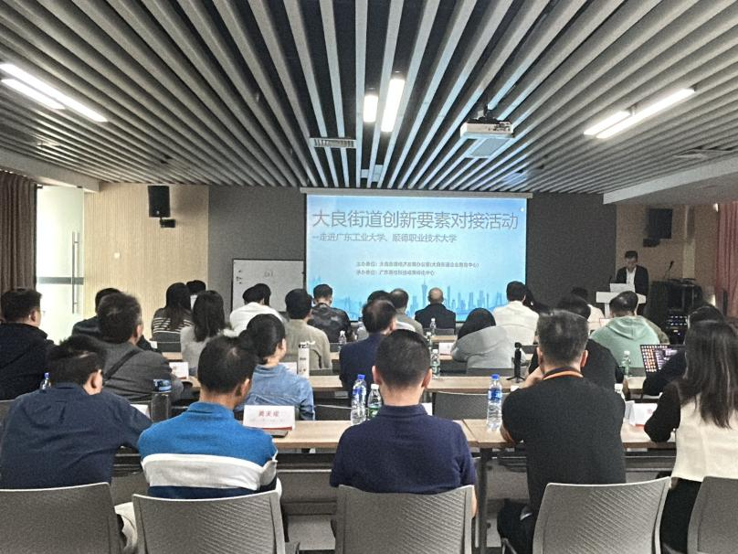 2025年10月28日下午,大良街道创新要素对接活动在顺德职业技术大学广东亚琛工业4.0应用研究中心顺利举行。顺德职业技术大学科技处处长张良桥、智能制造学院吴晖晖博士与刁建忠高级工程师、能源与汽车工程学院孙婉纯博士与张桃博士出席会议。大良街道办事处副主任匡一龙、经济发展办公室科技金融组组长唐雪兰,以及广东高校科技成果转化中心高级技术经理人严连菊等团队代表参加交流。